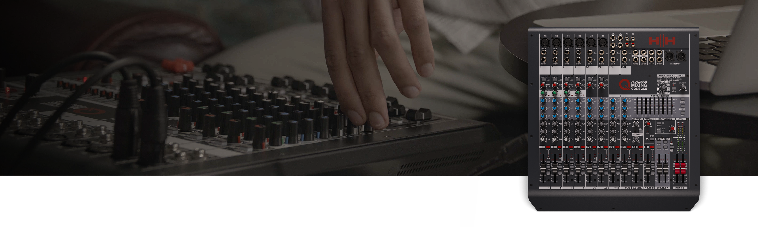 Bàn trộn âm thanh Analogue 12 Channels Q12FX hoàn hảo cho các buổi họi nghị, trình diễn sân khấu, và thu âm chuyên nghiệp.